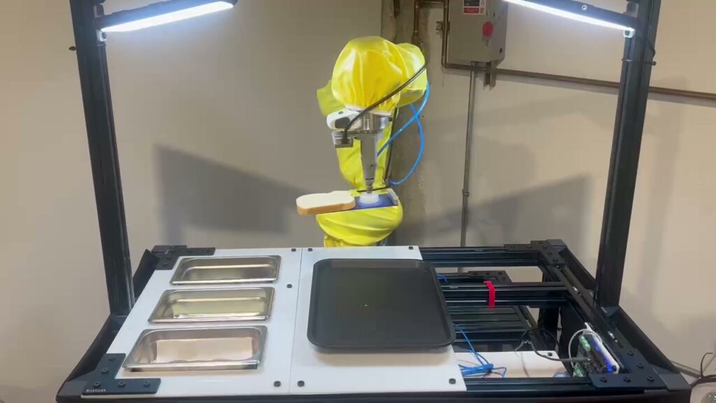 Picture Gallery Drafting the Functional Architecture on the Whiteboard. Testing Picking up Ingredients with the Shop-Vac. Dr. Kromer Enjoying the First Successfully Assembled Sandwich Old Pneumatic System Manipulating Bread Celebrating After the SVD Demonstration Manipulator in Action During FVD Demonstration Team Celebration after FVD Demonstration